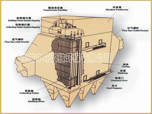 2)電除塵器陰陽極采用塵外頂部電磁錘振打,符合清灰原理,可靠性高、振打二次揚塵小。